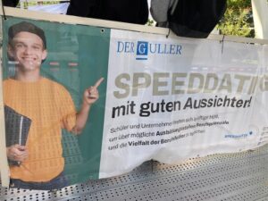 Neben der Fahrt im Riesenrad konnten die Schülerinnen und Schüler in der Job-Lounge der Messe noch weitere Unternehmen und Berufsmöglichkeiten aus den verschiedensten Branchen kennenlernen. Auch ein Vortrag über KI bei der Berufsorientierung gab Hilfestellungen für die Suche nach einem geeigneten Beruf.