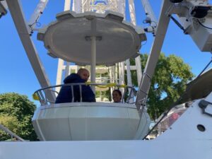 Bei einem beruflichen Speed-Dating konnten sich unsere Schülerinnen und Schüler bei regional ansässigen Unternehmen über Berufs- und Studienmöglichkeiten informieren. Dazu setzten sie sich zu verschiedenen Unternehmensvertreterinnen und -vertretern in eine Riesenradgondel und führten ihre Informationsgespräche vor sonniger Schwarzwaldkulisse.
