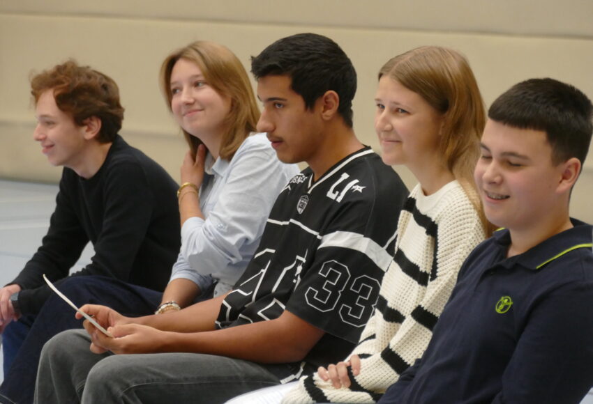 Selbstbewusst und gut vorbereitet präsentierten Alena Wäldele (J1), Stefan Frietsch (10a), Eren Can Güldali (J2), Marc Malabia Bugar (8a) und Lucy Fleig ihre Ideen und wurden für ihr Engagement und ihren Mut mit begeistertem Applaus belohnt. Spannend wird es nun am Freitag, wenn alle Schülerinnen und Schüler zur Wahlurne gebeten werden. (Sz)