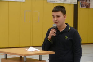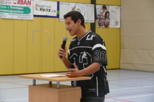 Selbstbewusst und gut vorbereitet präsentierten Alena Wäldele (J1), Stefan Frietsch (10a), Eren Can Güldali (J2), Marc Malabia Bugar (8a) und Lucy Fleig ihre Ideen und wurden für ihr Engagement und ihren Mut mit begeistertem Applaus belohnt. Spannend wird es nun am Freitag, wenn alle Schülerinnen und Schüler zur Wahlurne gebeten werden. (Sz)