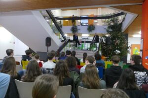 Am nächsten Tag knüpfte Luca Kieser mit einem Workshop zum kreativen Schreiben an diese Eindrücke an. Teilgenommen haben Schülerinnen und Schüler, die selbst bereits schreiben oder sich dem Schreiben annähern möchten. In gemeinsamer Arbeit wurden unterschiedliche Schreibtechniken und kreative Übungen erprobt, Texte entstanden, wurden vorgestellt und wertschätzend besprochen. Für viele Teilnehmende war dies ein ermutigender Moment: Einige Schülerinnen berichteten, neue Lust am Schreiben gewonnen zu haben und diesem Hobby künftig mehr Raum geben zu wollen. Die Begeisterung war spürbar – sowohl für das Schreiben selbst als auch für den offenen Austausch über Texte und Ideen.