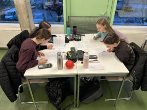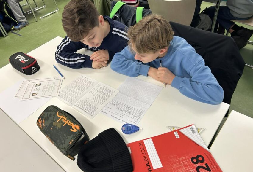 Am diesjährigen internationalen Bolyai-Mathematikwettbewerb nahmen am 13.01. acht Schülergruppen aus den Klassen 5 bis 9 unserer Schule teil. Der Wettbewerb, der seinen Ursprung in Ungarn hat, zeichnet sich dadurch aus, dass die anspruchsvolle Aufgaben im Team gelöst werden. Die Mathematik-Fachschaft freut sich über die vielen Teilnehmenden! (Rn)