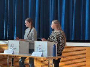 Beim Regionalfinale Oberrhein-Nordschwarzwald, das in diesem Jahr in Rheinau ausgerichtet wurde, hat sich Charlotte Hummel, 9b, für das Landesfinale in Stuttgart qualifiziert. Auch Pauline Hamm, ebenfalls 9b, stand im Finale des Wettbewerbs und ist Nachrückerin.