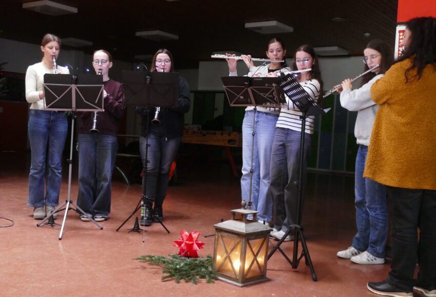Das heutige zweite musikalische Adventslicht wurde unter der Leitung und Mitwirkung von Frau Haag gestaltet. Die drei Klarinettistinnen Johanna Fien (K1), Leonie Sauer (9b) und Jola Urban (9a) machten den Auftakt mit dem Stück „Der kleine Trommler“. Das Flötenensemble, bestehend aus Marlene Sättler (9b), Emma Karcher (9b) und Luisa Riedinger […]